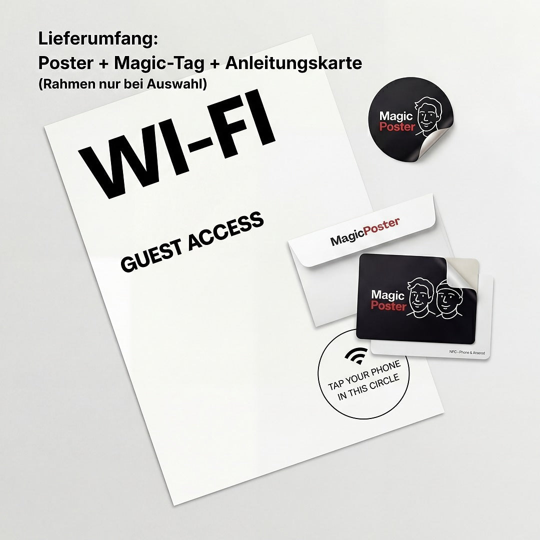 Dein ausgewähltes Kunstwerk & 1× Magic-Tag (Sticker, 8×6 cm) im Umschlag – ready to use.