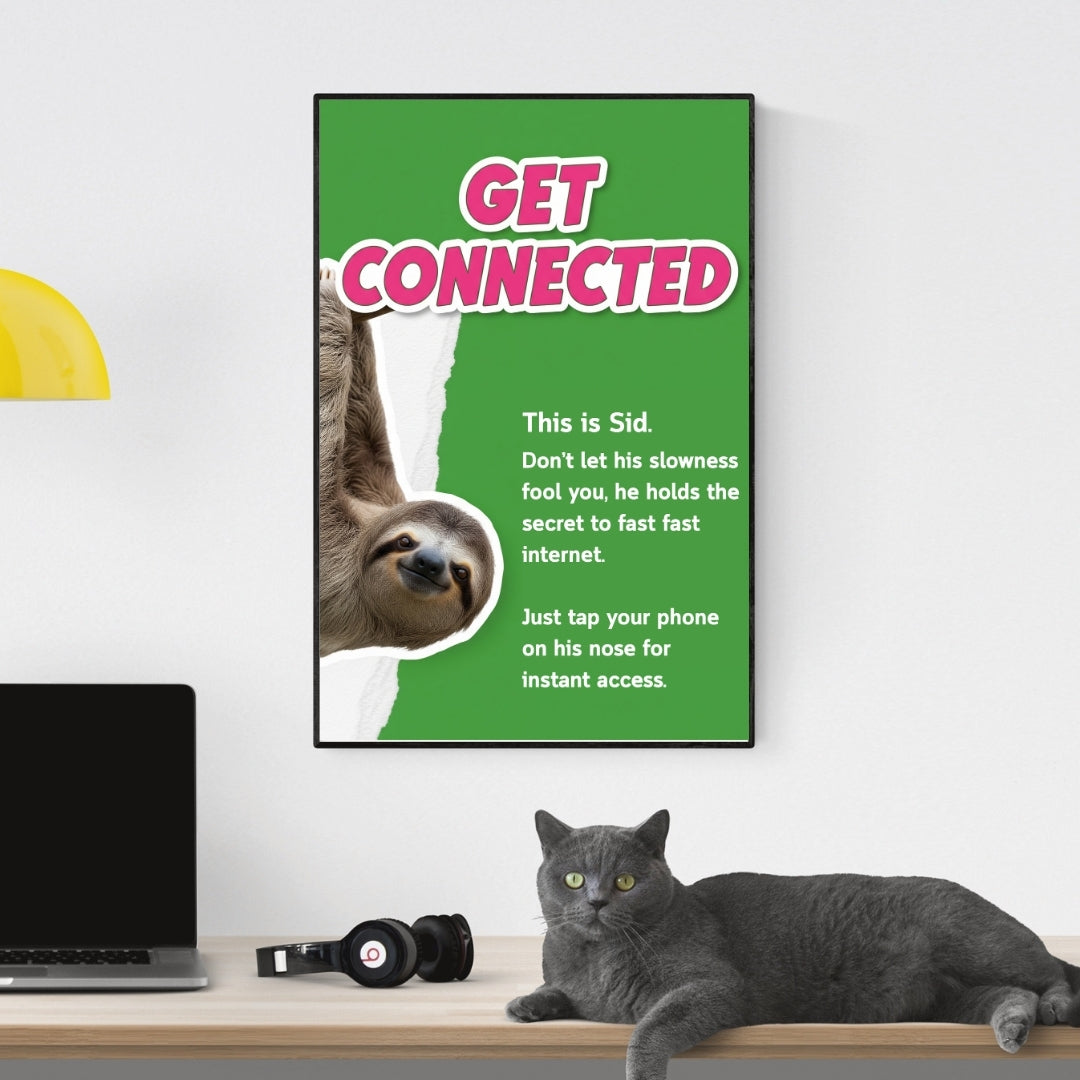 Hinterlege einmalig deine WiFi-Daten. Deine Gäste scannen das Bild und verbinden sich automatisch. Inklusive persönlicher Gästeseite mit deinen Nachrichten.